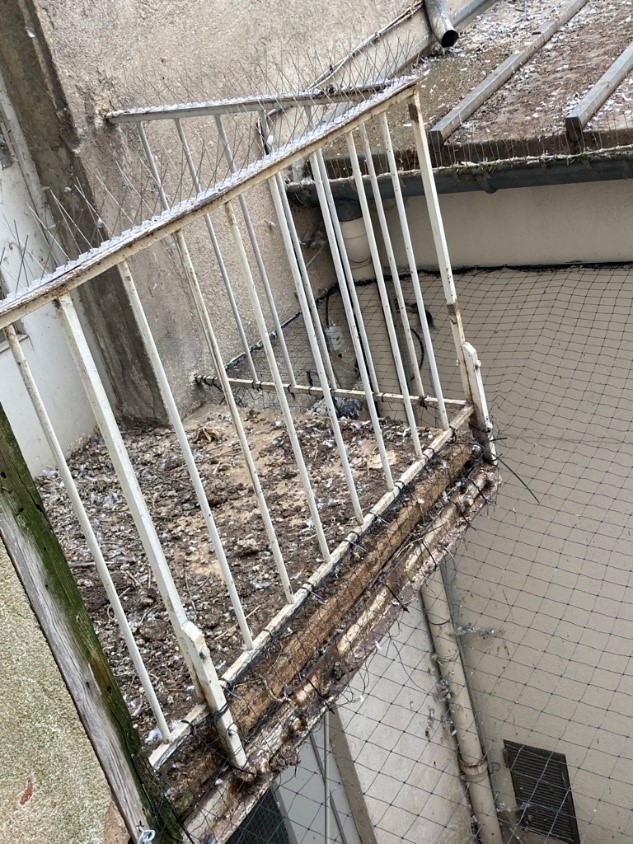 Présence importante de pigeons sur le toit d’un établissement bancaire avec intrusion des volatiles dans le bâtiment